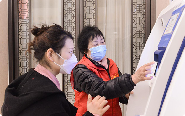 2、自助引导:指导患者使用自助服务机,快速挂号、预约、付费和打印检验报告单等。