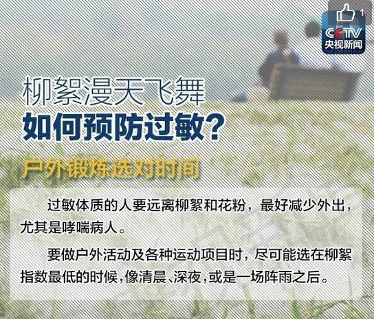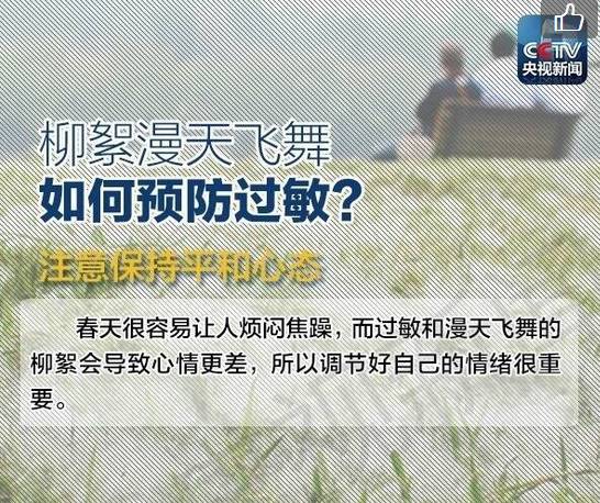 【柳絮纷飞令人喷嚏不断?快来学如何有效防过敏】又到了柳絮漫天飞舞的季节,也是各种过敏症状高发的时候。柳絮是过敏源,会引起打喷嚏、流鼻涕、皮肤瘙痒等各种过敏不适症。如何有效预防柳絮过敏?戳图学起↓↓转给身边被柳絮过敏困扰朋友吧!来源:央视新闻