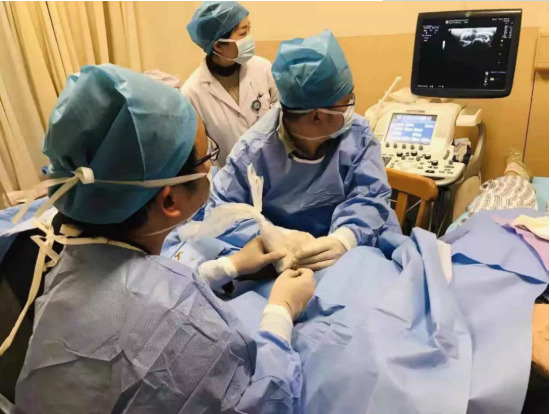 近日,我院血液净化中心联合超声科成功完成首例在超声引导下人造血管动静脉内瘘流出道(上臂贵要静脉)闭塞再通术,这标志着我院在治疗动静脉内瘘多处狭窄、血栓及闭塞性血管通路方面有了新突破,血管通路技术迈上了新台阶。