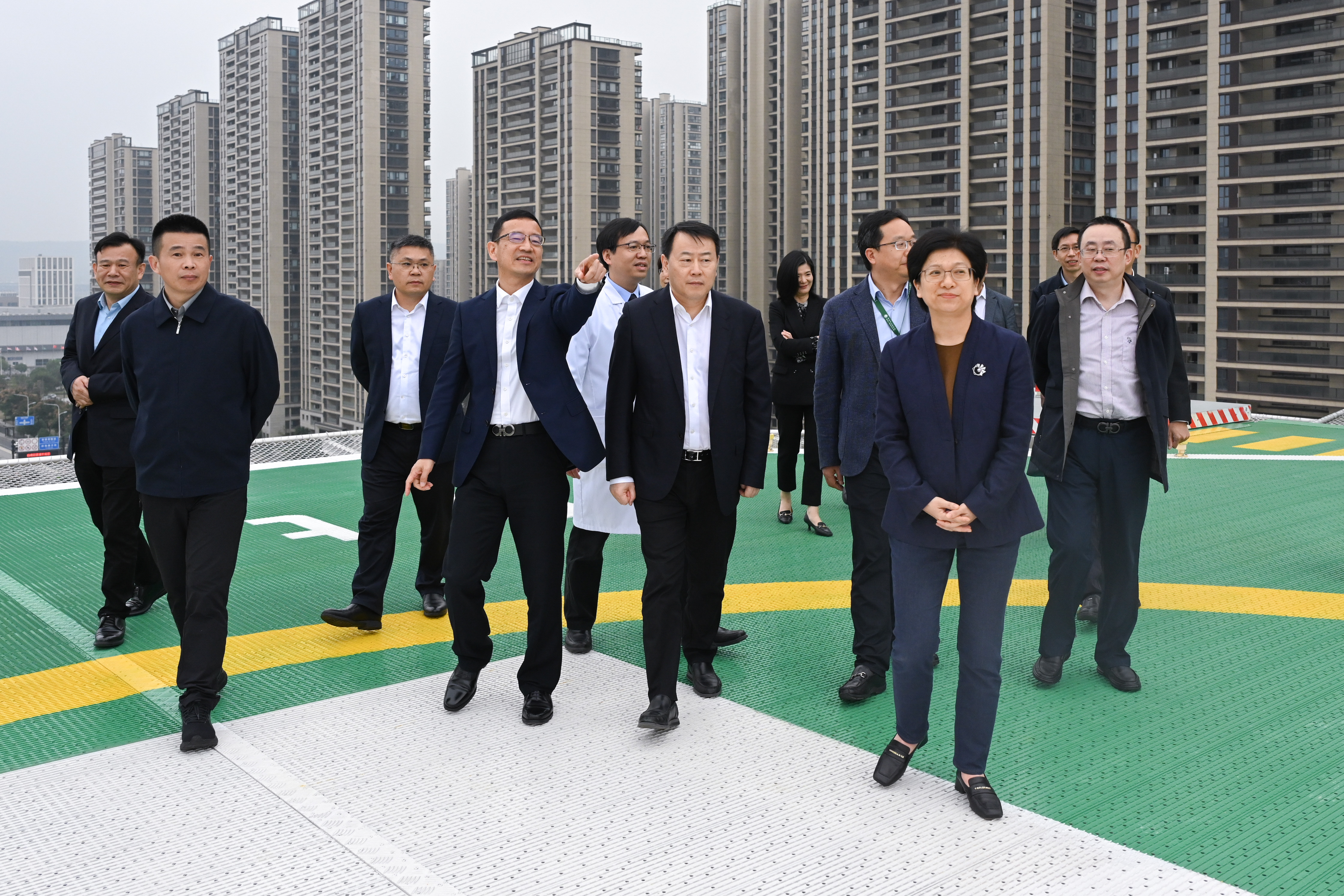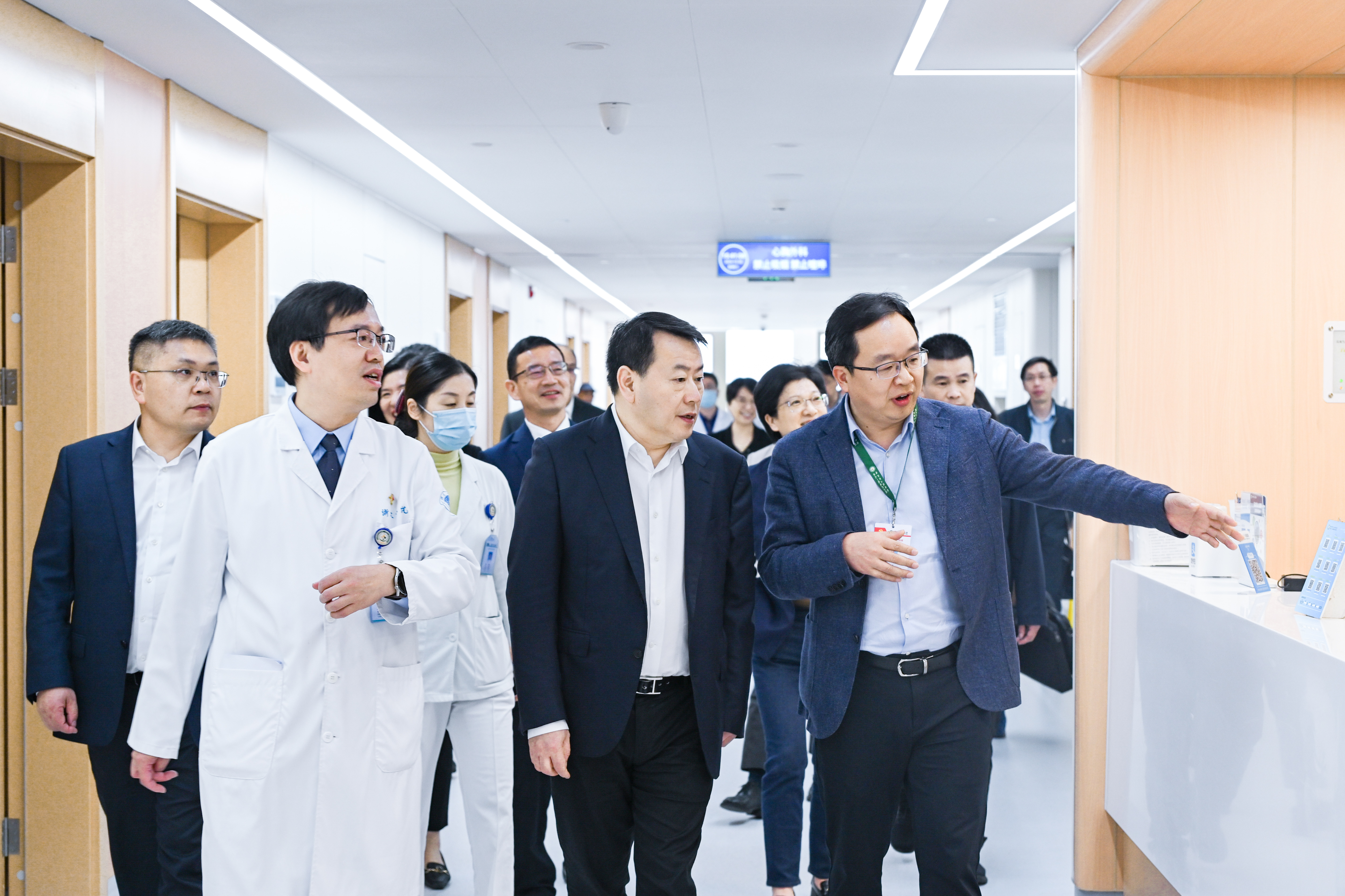 王仁元一行实地考察了医院的门诊、入院准备中心,重点考察了新急诊综合楼,参观了导管室DSA、急诊CT、DR、急诊大厅、抢救室,详细了解了5G急救系统。又进入病区实地了解智慧病房,参观了数字化手术室、杂交手术室等,还参观了航空救援直升机停机坪。