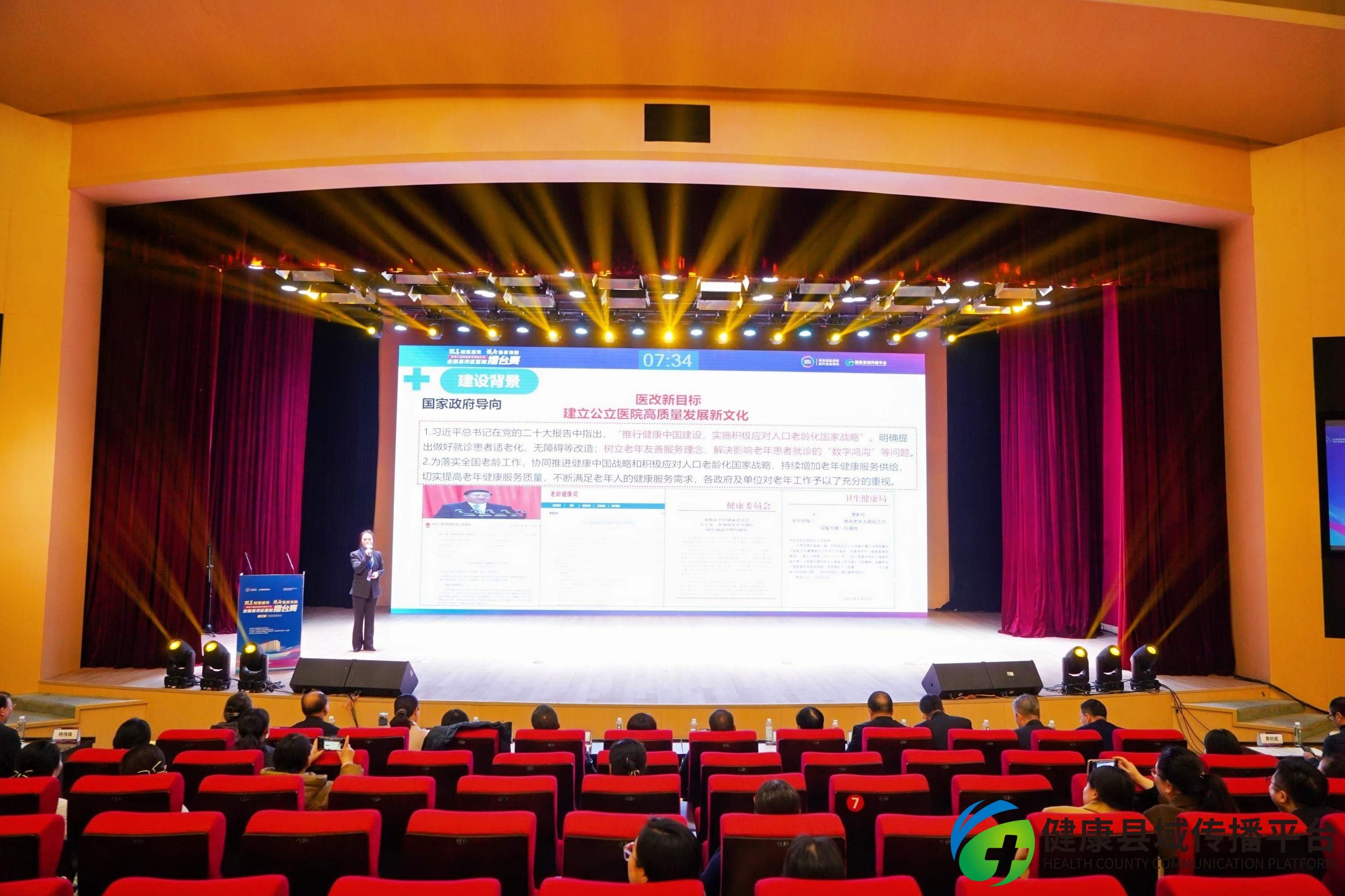 国家卫生健康委卫生发展研究中心健康战略与服务体系研究部副部长、研究员苗艳青 致辞。她对我院的环境和百年院史文化都赞誉有加。她指出,擂台赛走过五年了,许多案例都很精彩。改善永远在路上,我们对老百姓服务的心和我们医务人员的不断成长是跟我们整个国家的中国式现代化的大目标是息息相关的。中国式现代化需要高质量发展,中国式现代化需要我们共同推动我们整个医疗卫生事业的现代化和高质量发展。