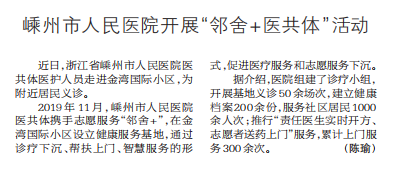 【健康报】嵊州市人民医院开展“邻舍+医共体”活动