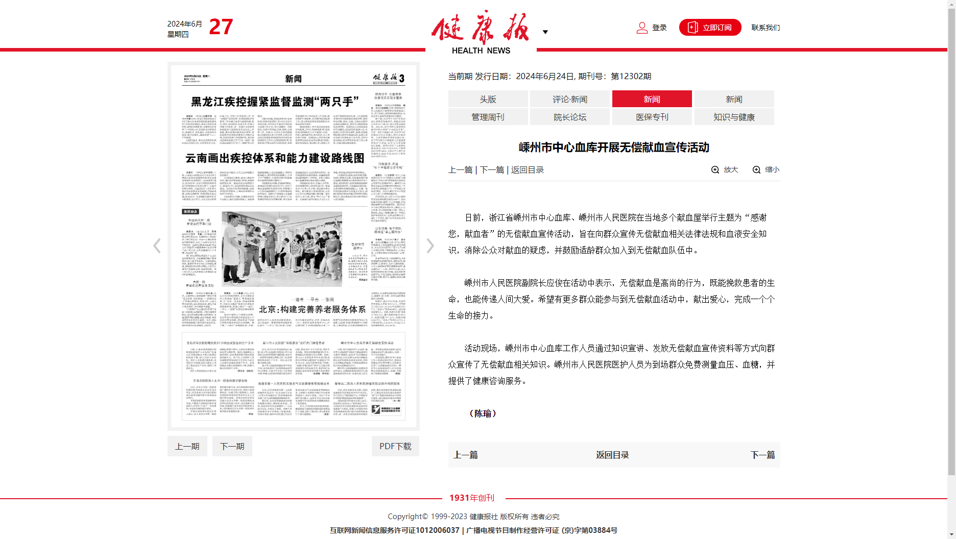 嵊州市人民医院副院长应俊在活动中表示,无偿献血是高尚的行为,既能挽救患者的生命,也能传递人间大爱。希望有更多群众能参与到无偿献血活动中,献出爱心,完成一个个生命的接力。