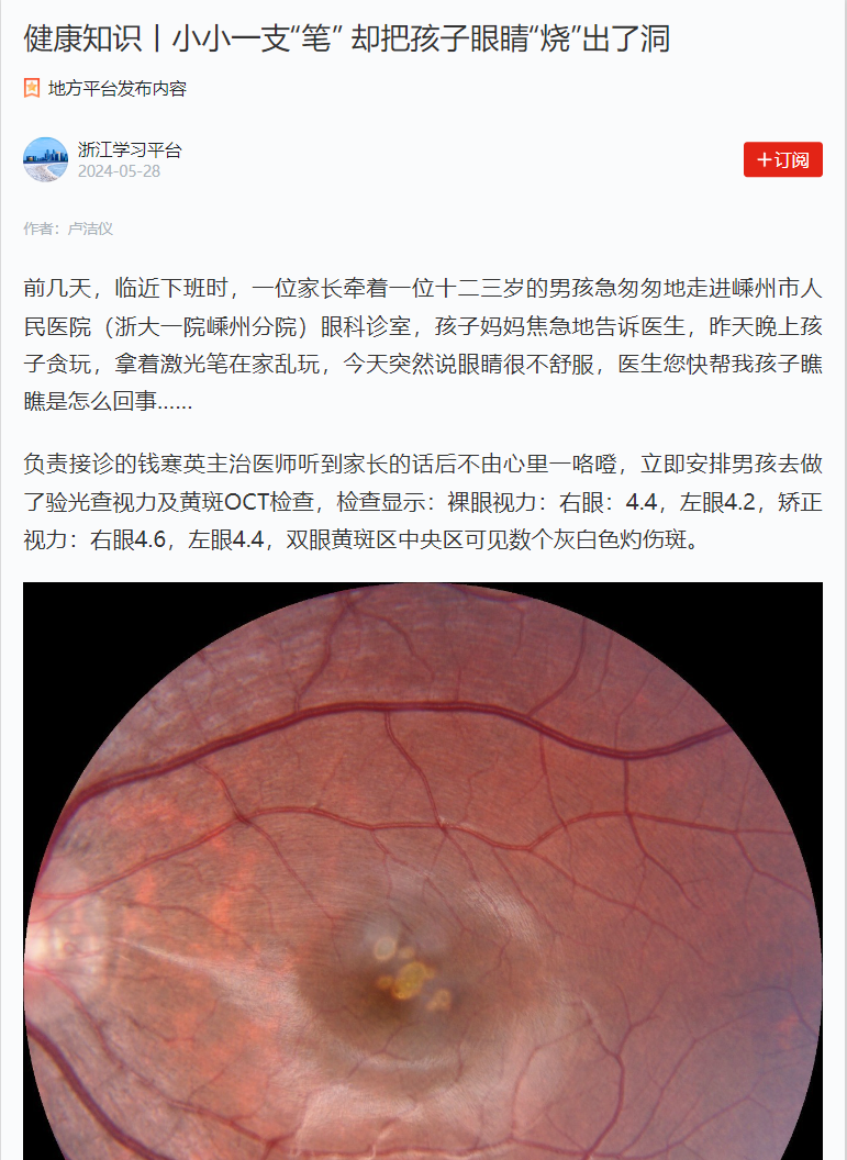 [学习强国]小小一支“笔” 却把孩子眼睛“烧”出了洞