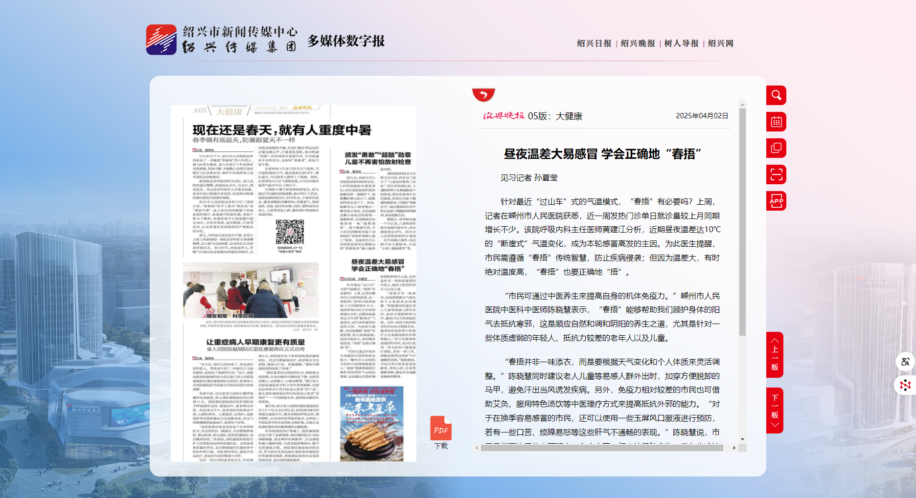 【绍兴晚报】昼夜温差大易感冒 学会正确地“春捂”