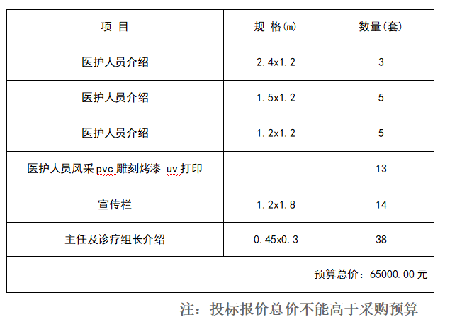 根据我院科室宣传需要,现需采购科室宣传栏制作,请符合资质的广告公司积极参与。