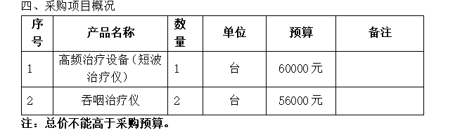 根据我院临床科室发展需要和医疗设备采购计划,现需采购一批医疗设备,请符合资质的供应商积极参与。