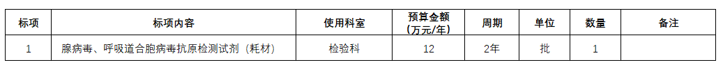 1.项目名称:腺病毒、呼吸道合胞病毒抗原检测试剂、一次性鼻氧管等医用耗材(第二次)