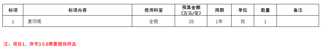 1.项目名称:复印纸后勤物资(第二次)