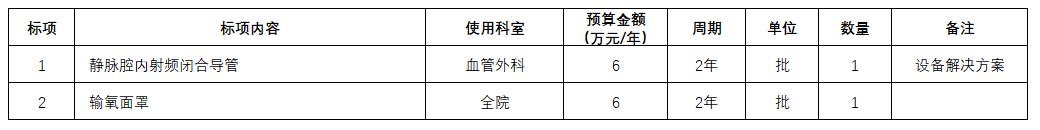 1.项目名称:静脉腔内射频闭合导管、输氧面罩等耗材(第二次)
