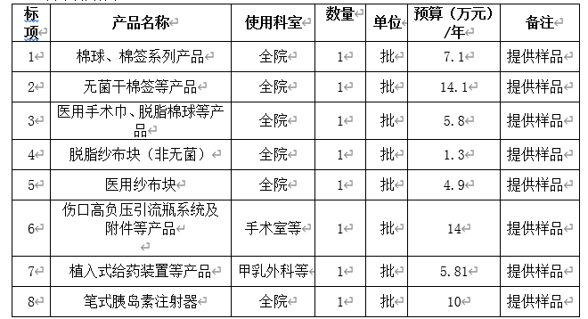 根据我院临床科室发展需要和耗材采购计划,现需采购一批耗材,请符合资质的供应商积极参与。