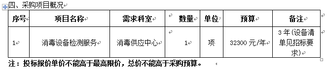 根据我院临床科室发展和医疗设备维护保养需要,现需采购一项消毒设备检测服务,请符合资质的供应商积极参与。
