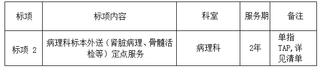 2、本次采购内容为嵊州市人民医院病理科外送服务,包括但不限于提供运输服务,配套车辆设备,配备服务人员,设备维护保养,外送标本检测等全部工作。