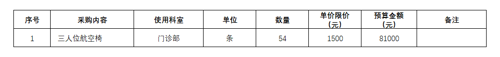 根据医院采购计划安排,需采购一批三人位航空椅,请符合资质的供应商积极参与。