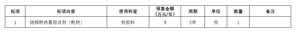 1.项目名称:结核耐药基因试剂(耗材)(第三次)