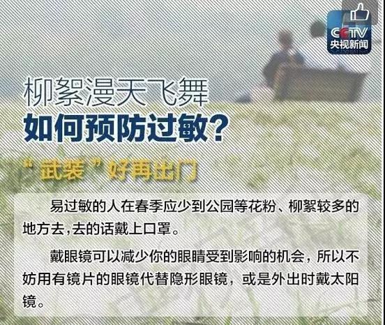 【柳絮纷飞令人喷嚏不断?快来学如何有效防过敏】又到了柳絮漫天飞舞的季节,也是各种过敏症状高发的时候。柳絮是过敏源,会引起打喷嚏、流鼻涕、皮肤瘙痒等各种过敏不适症。如何有效预防柳絮过敏?戳图学起↓↓转给身边被柳絮过敏困扰朋友吧!来源:央视新闻