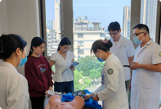 技能培训中心重点内容为基本操作技能(CPR,气管插管),心电图、急救止血,四大穿刺(胸腔穿刺、腹腔穿刺、腰椎穿刺、骨髓穿刺)、换药等,与院感及疫情相关技能基本技能(穿脱隔离衣、穿脱防护服、咽(鼻)拭子采样)。此外,根据住院医师规范化培训实践能力结业考核要求,技能培训同时融合临床思维与决策,在实际操作中随时根据病情进行正确的专科技能操作,提高岗位胜任力。