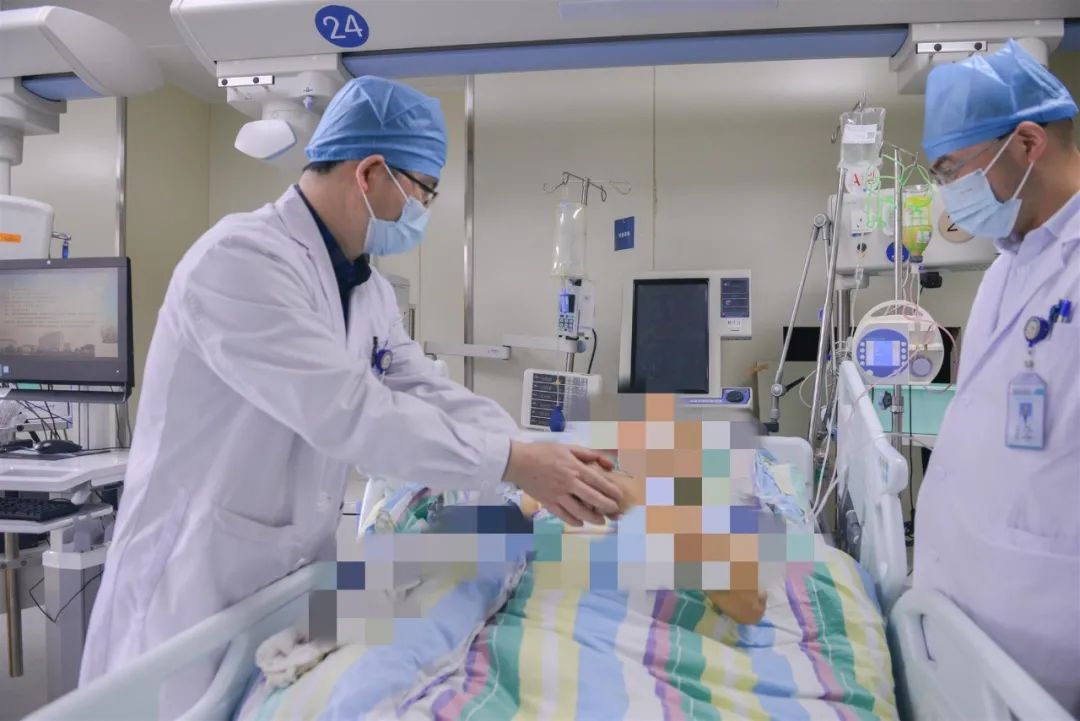 “医生,你一定要救活他啊,他是家中的顶梁柱,妻子与孩子都没有完全的民事行为能力,要是他再有个什么三长两短,这个家就彻底毁了。”得知病情的家属惶恐不安、心急如焚,他们把所有希望都寄托在了王春江医师身上。医者,很多时候是患者帮助其渡厄的神,承载生的希望。手术台上,以王春江医师为核心的手术团队展开了争分夺秒救治手术。修补破裂的肠管,切除坏死的小肠及破裂脾脏……在麻醉科的保驾护航和手术室的密切配合下,最终不负重托,通过3个多小时的紧张手术从“死神”手中抢回了患者的生命。