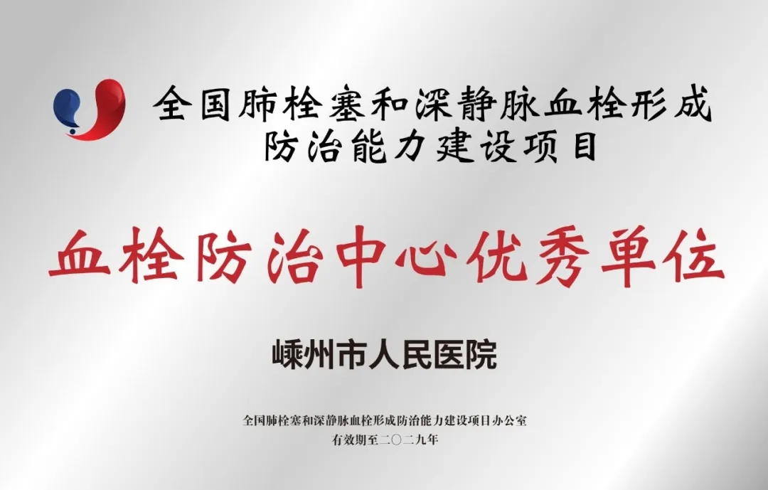 2024年3月,接全国肺栓塞和深静脉血栓形成防治能力建设办公室通知,我院正式通过VTE防治中心认证,并授予我院肺栓塞和深静脉血栓形成防治能力建设项目优秀级单位。