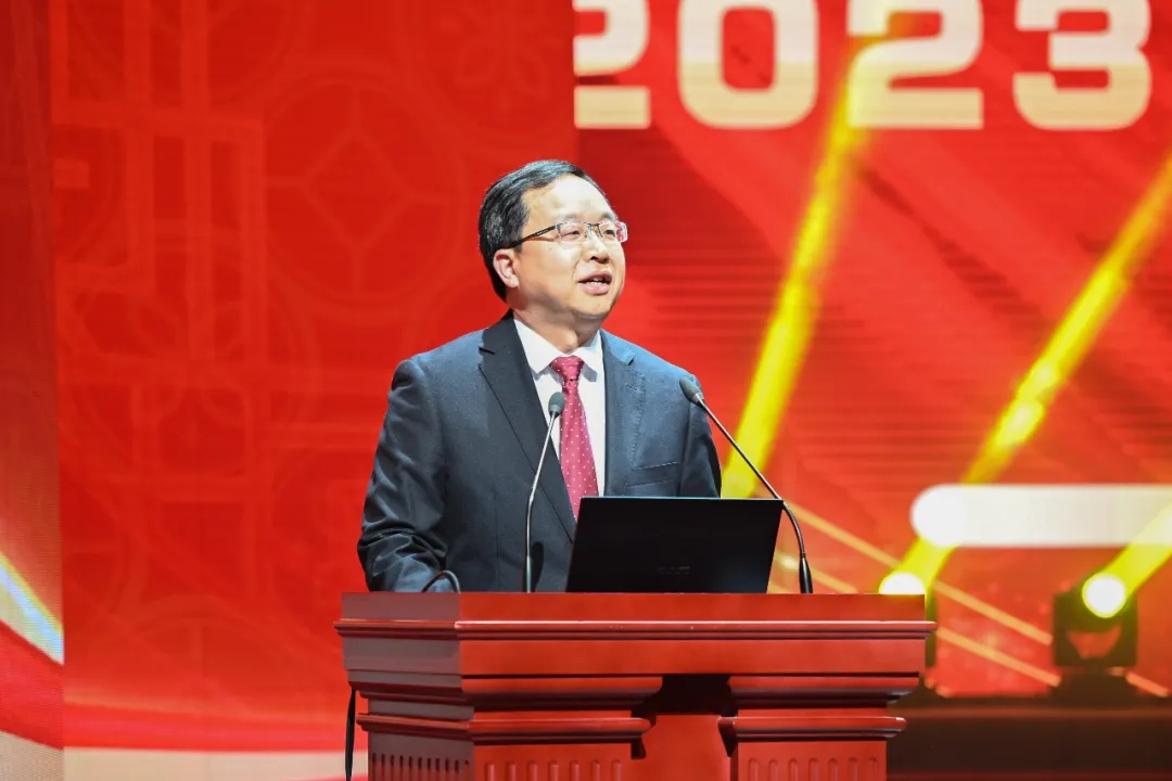 党委书记李谷代表医院党委向长期以来关心支持医院事业发展的各级领导和兄弟单位表示感谢,向受到表彰的先进单位和个人表示祝贺。他表示,2023年,我们强化党委引领,信仰为灯,高站位履行健康使命。我们实干为基,高标准提升医疗质量。我们科研为魂,高要求推动守正创新。我们“医”心为民,高质量改善就医体验。他对医院2024年工作开展提出四点要求:一要凝心聚力谋发展。进一步厘清工作思路,明确发展目标,把握重点方向,凝聚全体员工的智慧,团结一心谋积极投入医院发展的各项工作中。二要抢抓机遇促转型。二期急诊大楼即将投入使用。我们要及时转变发展理念,明确医院发展定位,从医、教、研等方面着眼布局三级甲等医院创建工作,以党建促发展,进一步提高医院的服务能力与服务水平。三要甘于奉献勇担当。领导干部担当作为,以身作则,以饱满的工作热情,严谨的工作态度,全身心投入到本职工作中。四要狠抓作风树形象。加强廉政建设,时时自重、自省、自警、自励。建立一手抓医院管理,一手抓医疗安全,一手抓医德医风的“一岗三责”制度,持续为人民群众生命健康保驾护航。