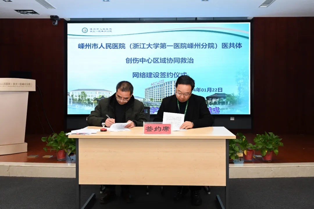为深入践行“进一步改善医疗服务行动计划”活动,推进分级诊疗体系建设,逐步建立起县域内创伤疾病救治服务协作网,探索完善“县-乡”两级创伤救治网络体系,进一步提高县域创伤综合救治能力。1月22日下午,嵊州市人民医院(浙大一院嵊州分院)医共体创伤中心区域协同救治网络建设合作签约仪式在院11号楼会议室举行。院党委书记李谷、院长(创伤中心主任)杨松斌、副院长(创伤中心常务副主任)王春江、副院长黄小松、相关医共体分院院长、创伤中心核心团队成员及各职能科室代表参加此次会议。会议由党委委员(创伤中心副主任)黄杭斌主持。