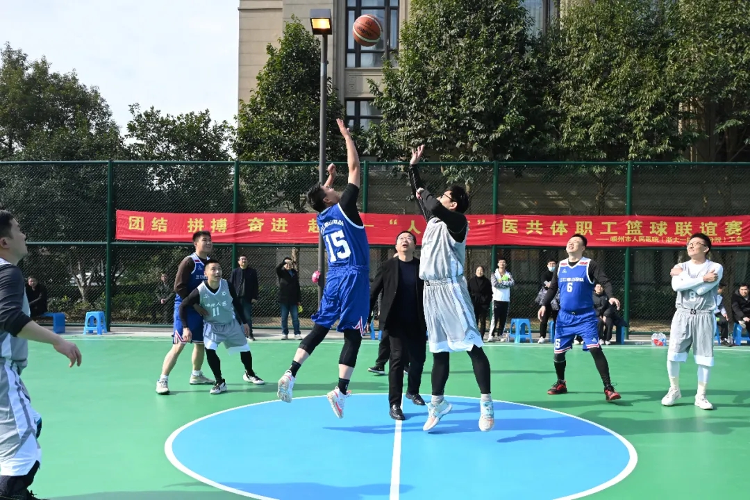 冠军之战,巅峰对决,1月5日上午,“人医杯”医共体职工篮球联谊赛决赛在医院篮球场火热开赛。院领导班子、职能科室代表、啦啦队等100余人观看了比赛。