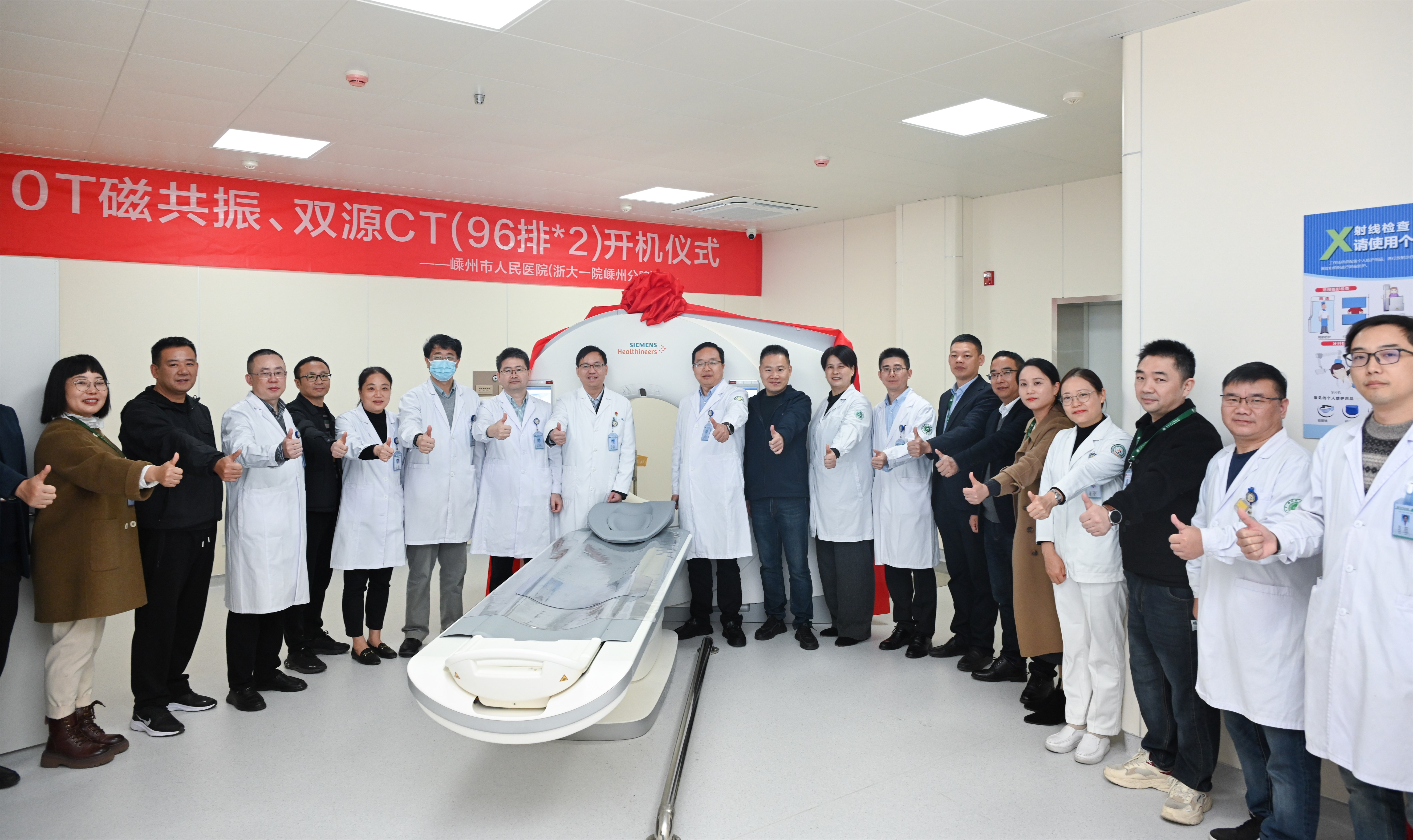 医院同时引进德国西门子双源 CT与西门子高端3.0T磁共振,将对疾病的早期发现、早期诊断、早期治疗提供更有力保障,极大提高嵊州、新昌及周边地区医学影像检查能力,造福广大百姓。