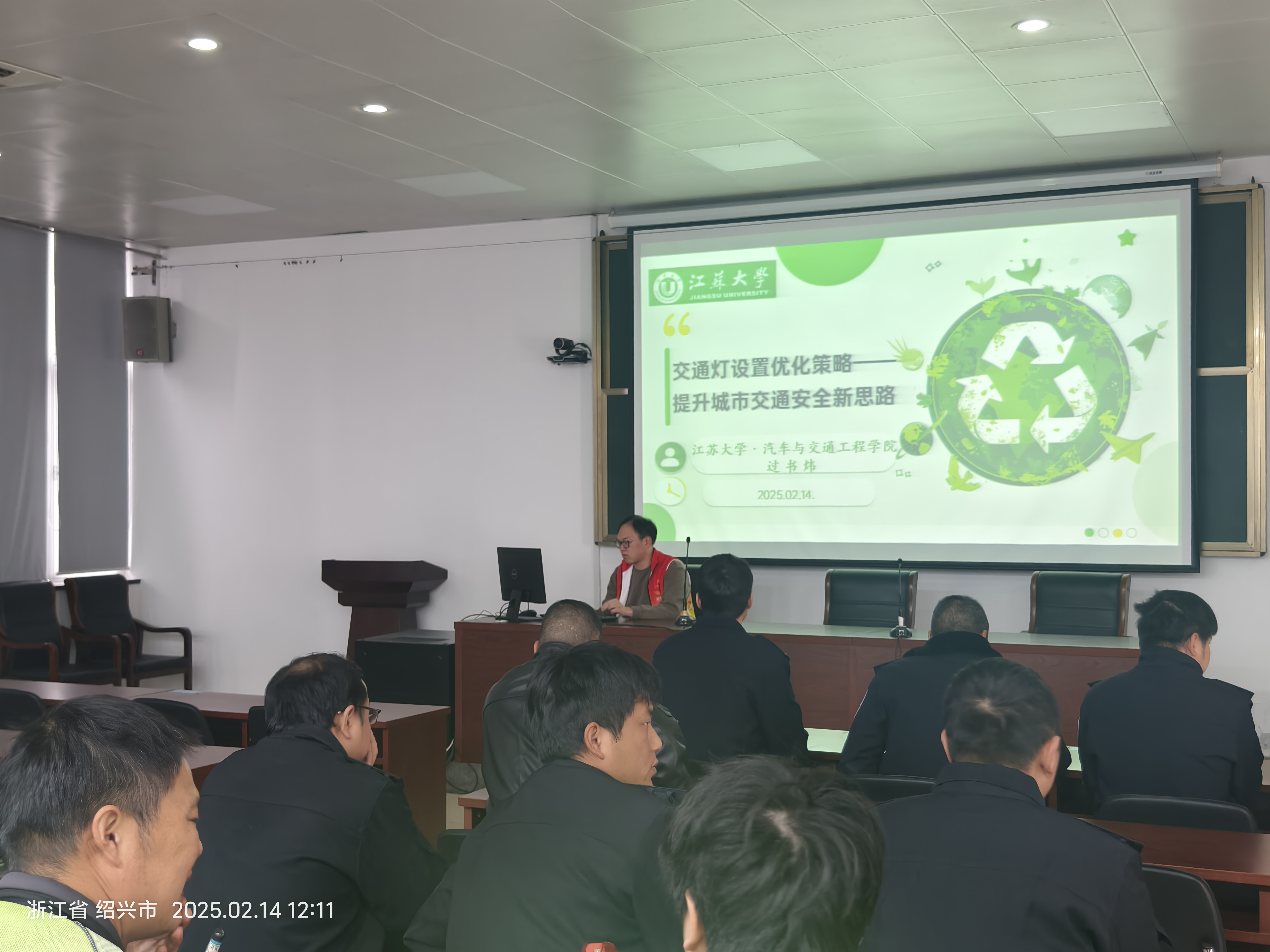 江苏大学汽车与交通工程学院过书炜同学讲解了《交通灯设置优化策略——提升城市交通安全新思路》,他从专业角度讲解了合理设置交通灯对提升交通安全的重要性及交通灯设置的优化策略,提出动态自适应控制、多相位冲突消解、视觉强化升级及特种车辆优先通行等智能方案,通过实时调整信号配时、分离车流、增强可视性等措施提升安全与效率。可显著下降交通事故率,减少行人违规行为,同时提升公众出行安全感和城市智能化形象,实现安全与效率的双重优化。他的讲座为警员们提供了一种新思路。