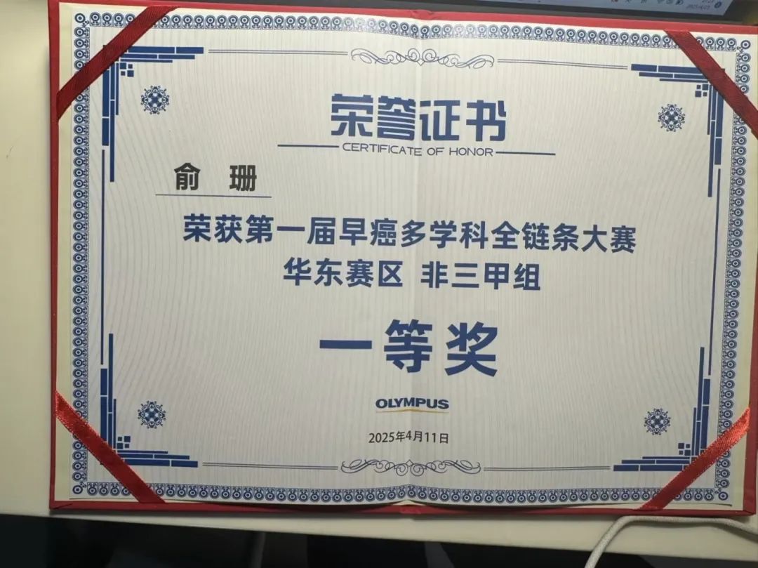 俞珊主任通过病例分享,手术视频介绍等,获得专家评审的一致好评,荣获华东赛区非三甲组一等奖,充分彰显了我院及科室的在消化道疾病诊治方面的专业与硬核实力。