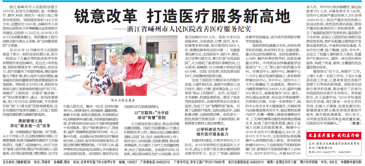 【健康报】锐意改革打造医疗服务新高地 ——浙江省嵊州市人民医院改善医疗服务纪实