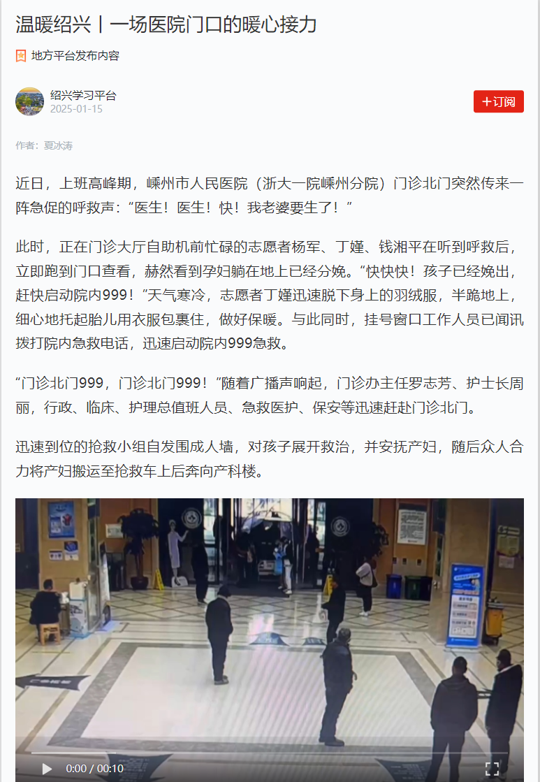 【学习强国】温暖绍兴丨一场医院门口的暖心接力