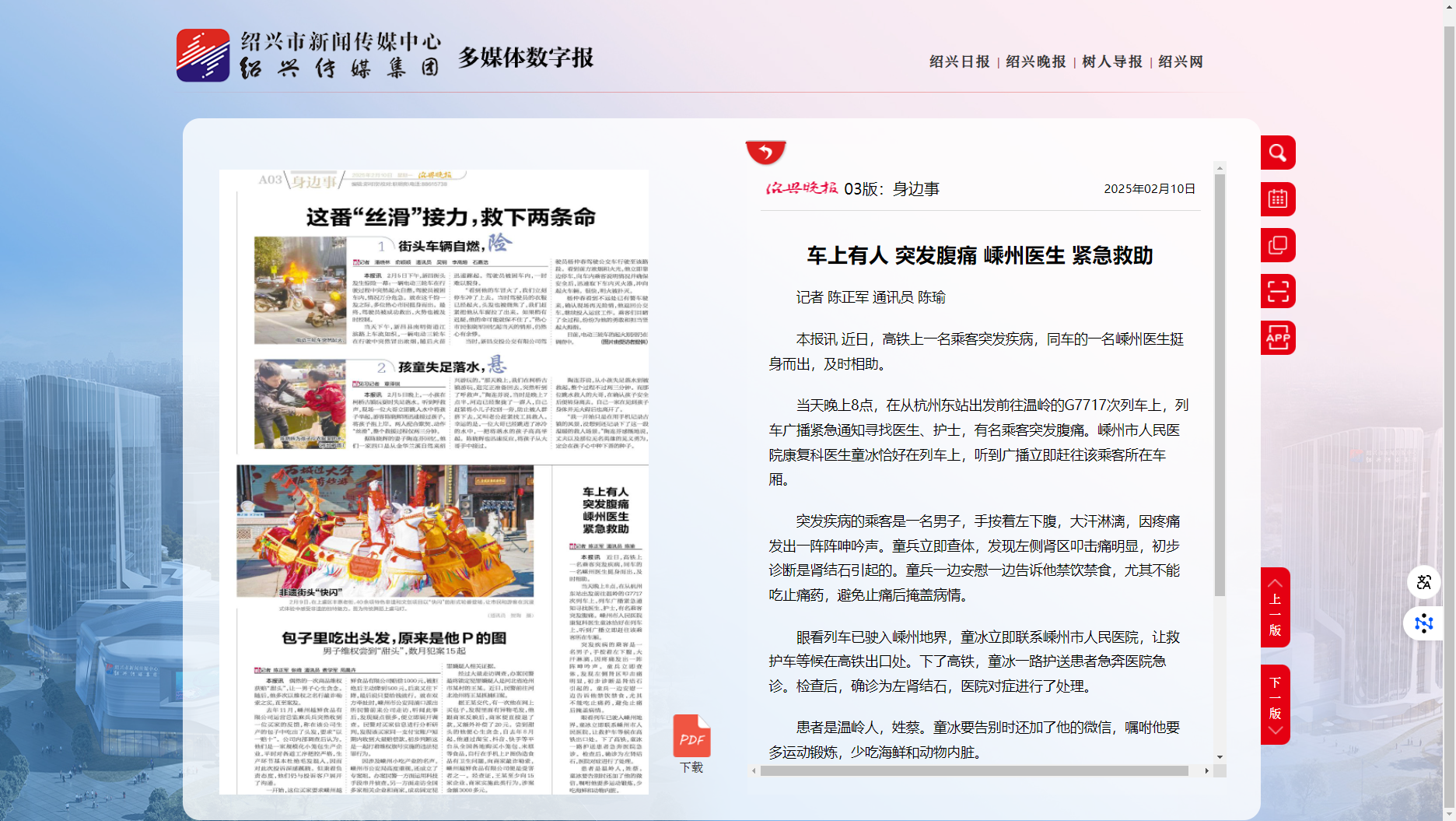 【绍兴晚报】车上有人突发腹痛 嵊州医生紧急救助