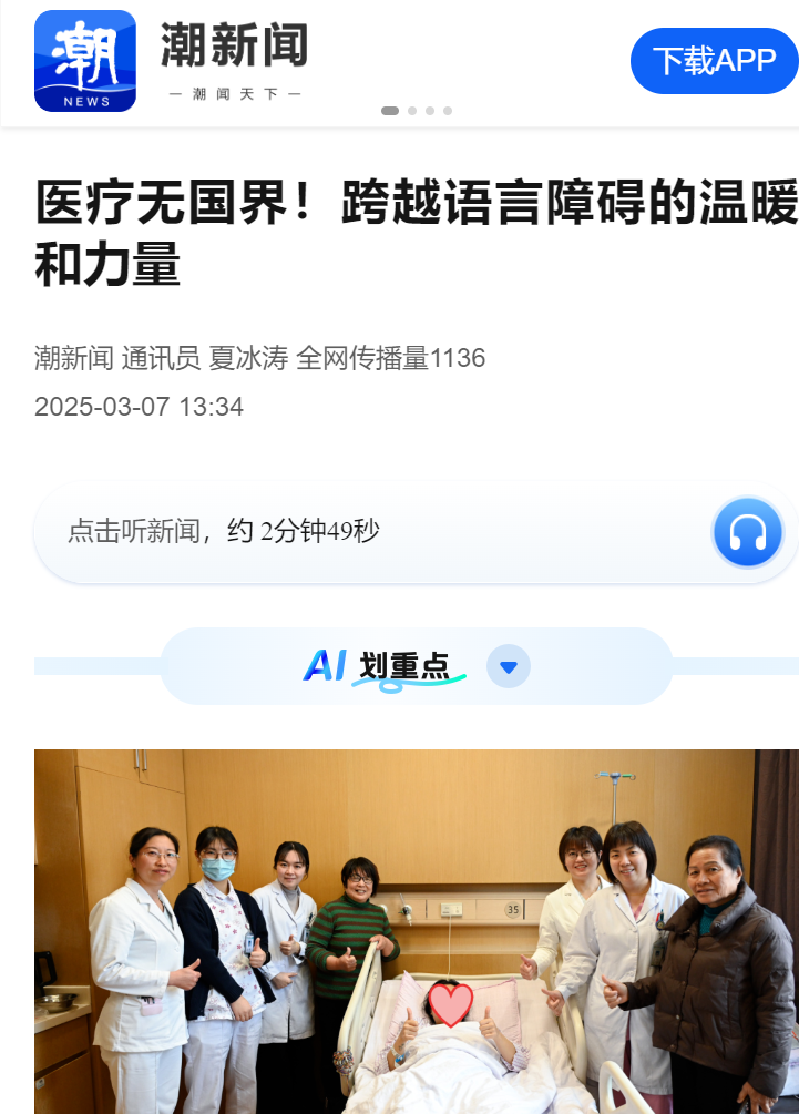 产科护士长张晓莉表示:“在陪伴这位泰国籍产妇分娩的过程中,我们深刻意识到,除了给予她身体和心理上的全方位支持外,还必须充分考虑到文化差异带来的种种影响。需要我们从沟通交流、习俗尊重、物资准备等多个方面,精心做好每一项工作。随着医院这几年外籍患者接诊率的增加,语言不仅是沟通工具,更是消除文化隔阂、建立信任的关键。近年来,我们产科护理团队始终坚持以患者为中心,注重细节服务,提升患者体验。无论是面对语言障碍的外籍患者,还是特殊需求的本地患者,我们都能以专业的技术和温暖的态度,让每一位前来就诊的患者都能感受到‘家’的温暖。”