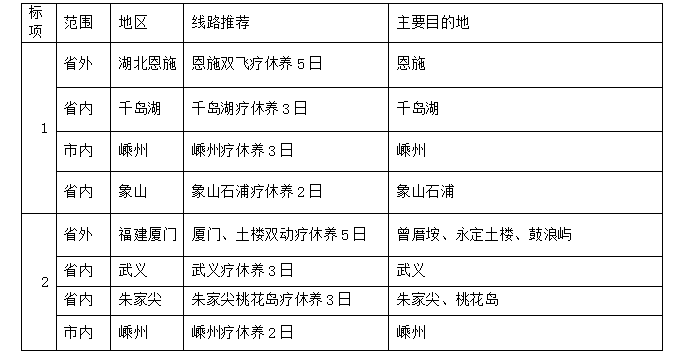 2.疗休养地点及线路要求:详见下表。医院最高结算单价分2000元/人、1800元/人和1000元/人三种,超出部分均由职工自行支付。