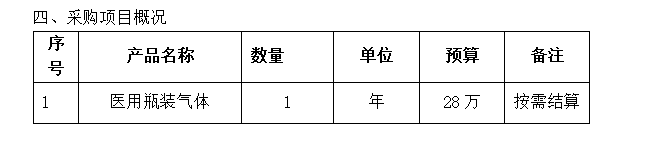 根据我院临床科室发展需要和采购计划,现需采购医用瓶装气体供应商一家,请符合资质的供应商积极参与。