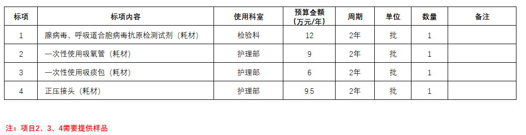 1.项目名称:腺病毒、呼吸道合胞病毒抗原检测试剂、一次性鼻氧管等医用耗材