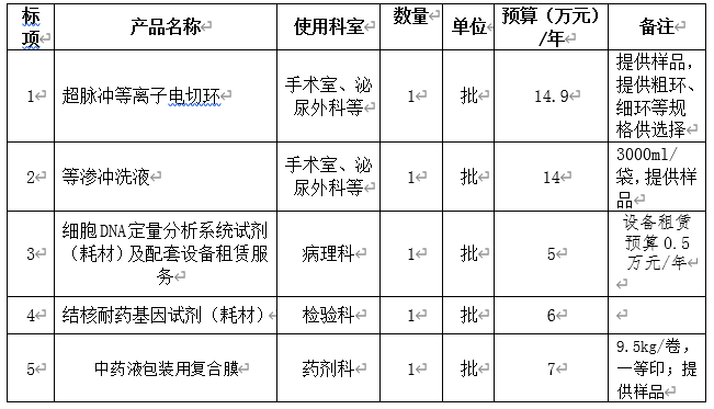 根据我院临床科室发展需要和耗材采购计划,现需采购一批耗材,请符合资质的供应商积极参与。