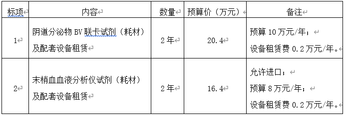 二、项目名称:嵊州市人民医院阴道分泌物BV联卡试剂(耗材)、末梢血血液分析仪试剂(耗材)及配套设备租赁项目