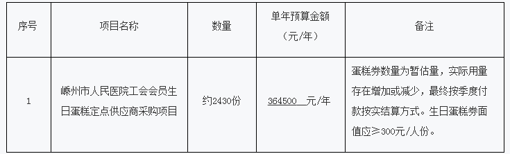 二、 招标项目名称: 嵊州市人民医院工会会员生日蛋糕定点供应商采购项目