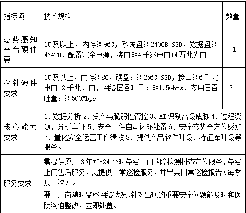 该项目须满足医院安全运行的日常工作要求。详细功能技术参数如下: